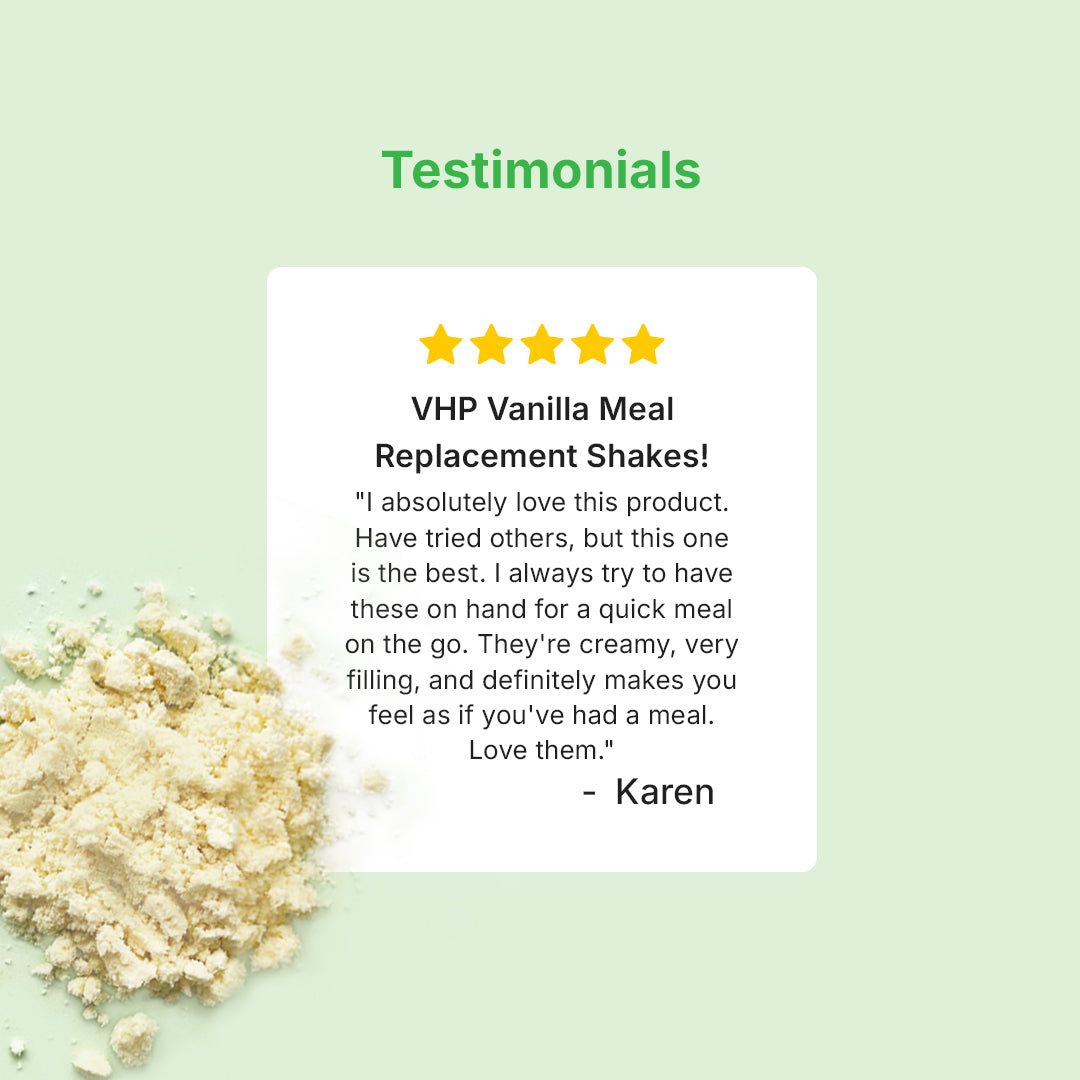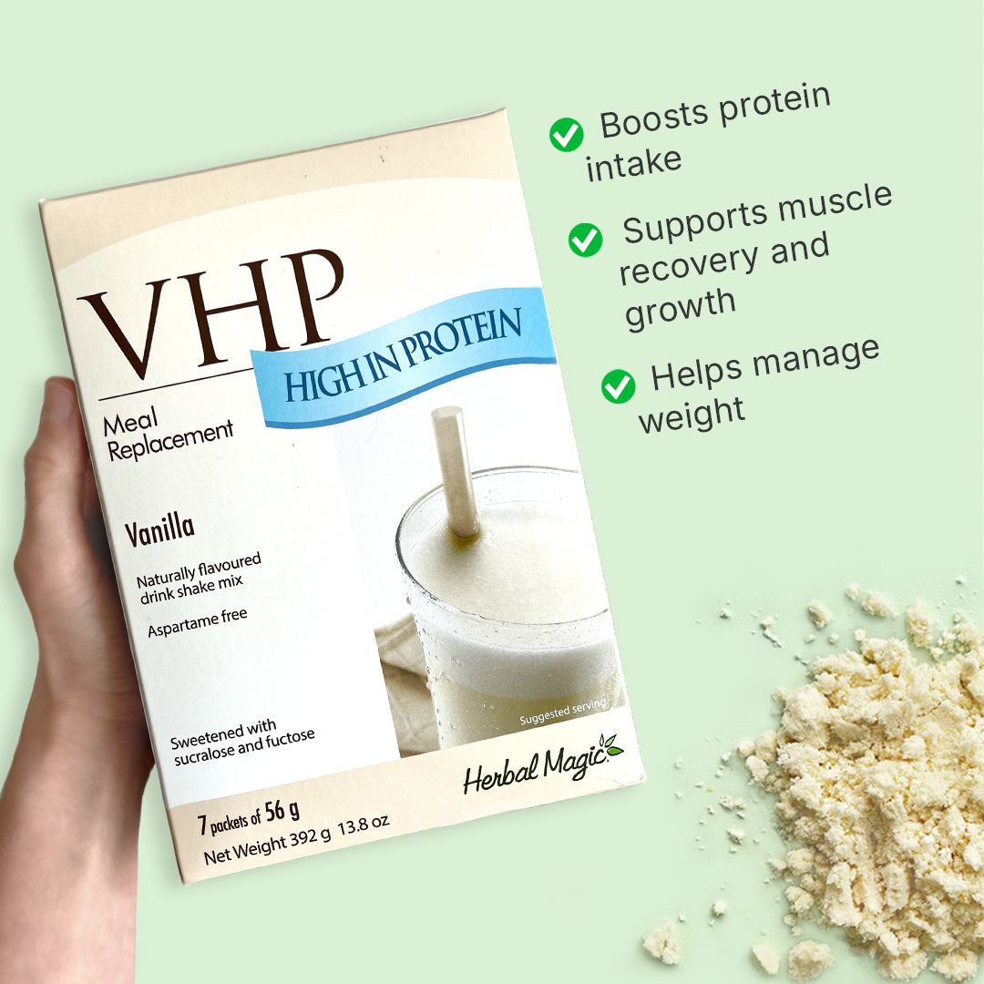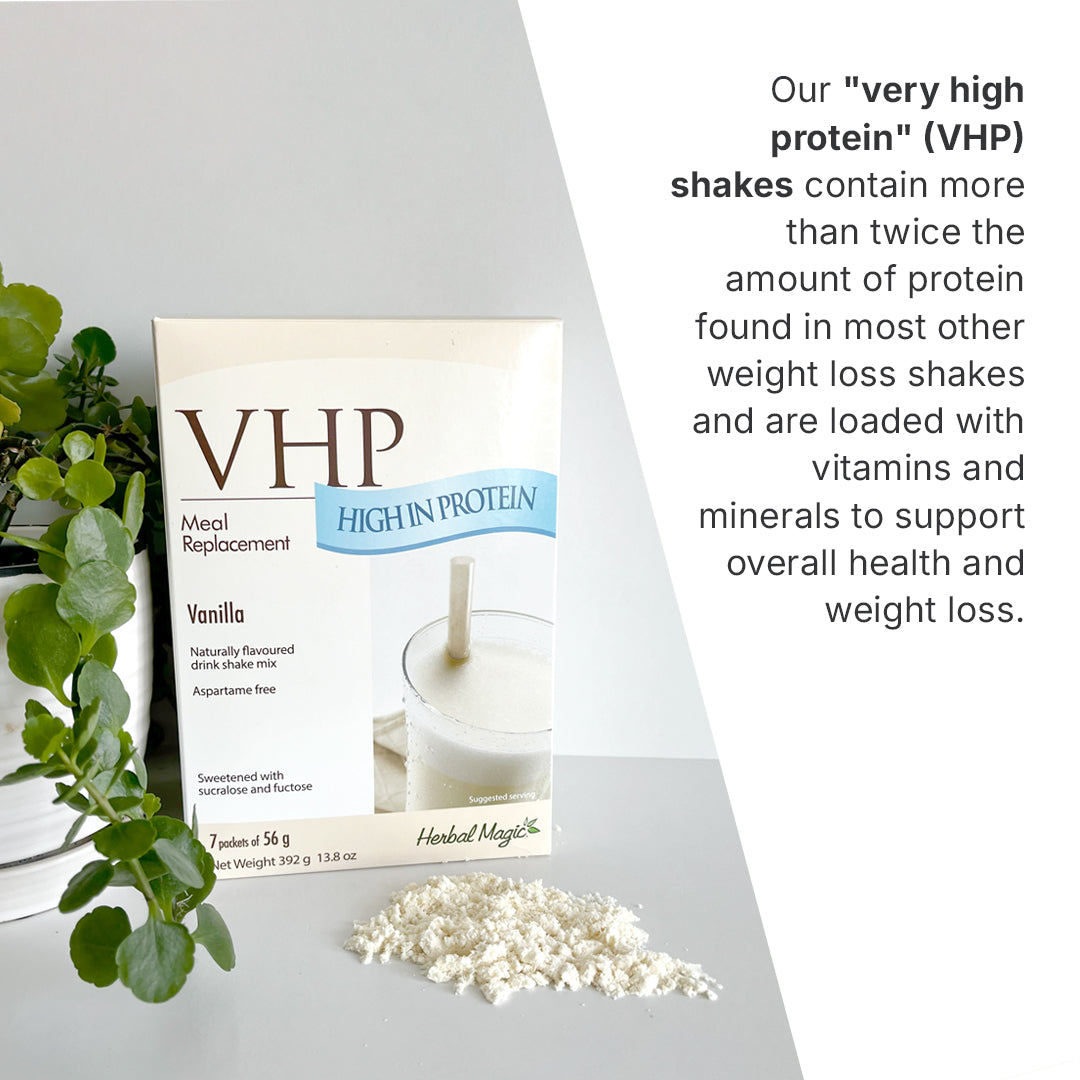 • Our VHP Vanilla Meal Replacement Shake helps build muscle and repair tissue to enhance weight loss.