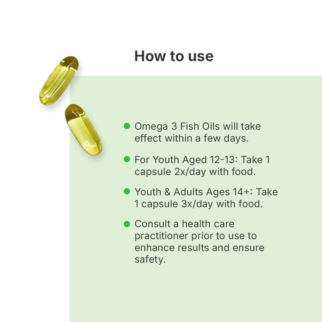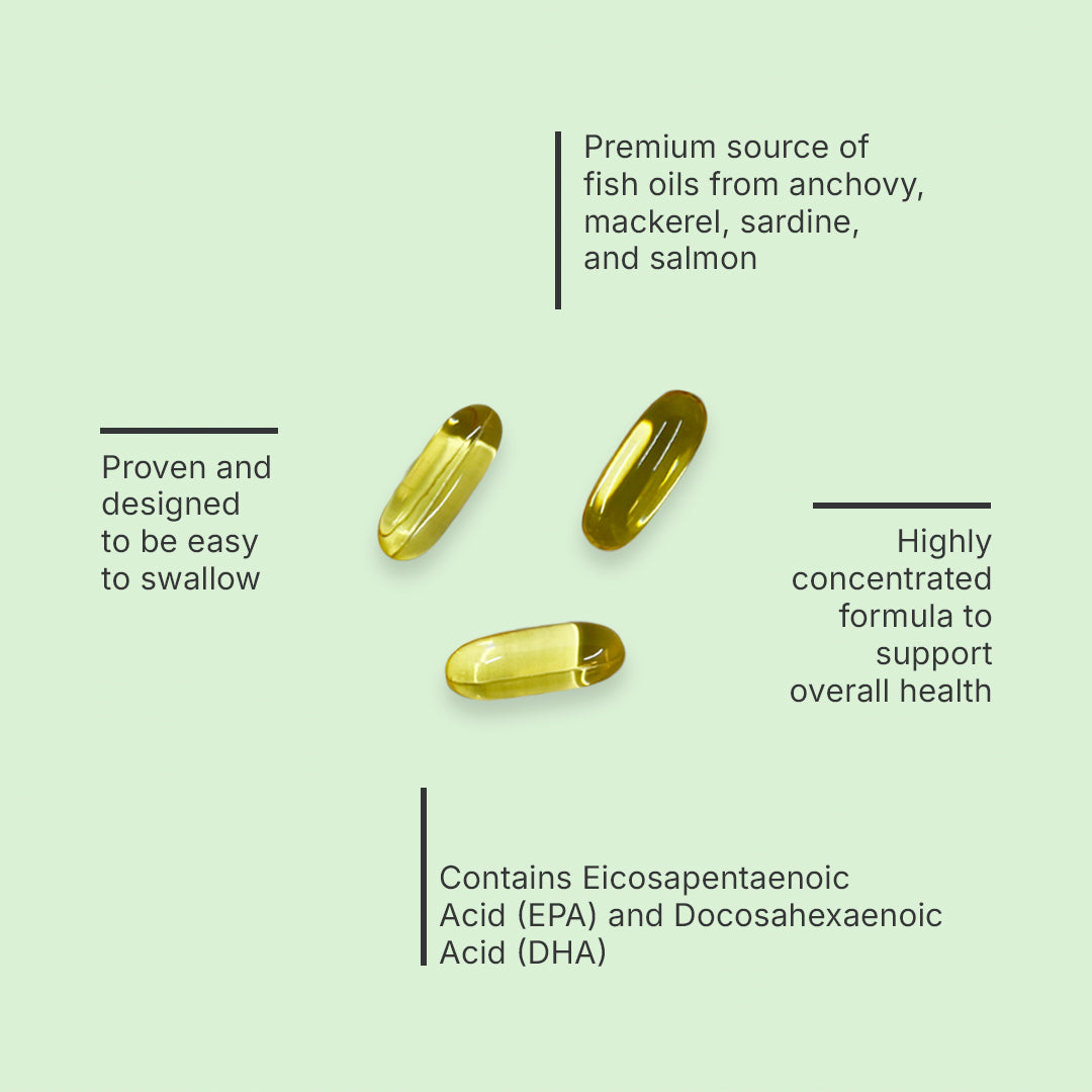 • Our Omega 3 Fish Oils helps support overall health, heart health, brain function, while reducing triglycerides.