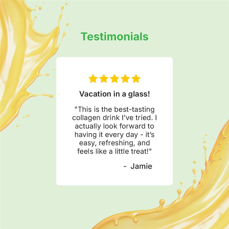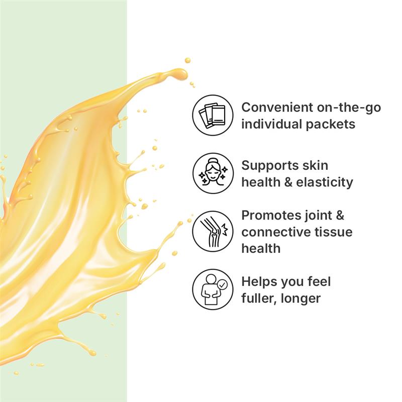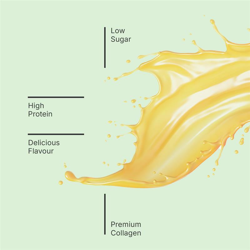 This refreshing peach mango–flavoured drink helps support your metabolism, skin health and elasticity while promoting fullness, making it a great option between meals or when you need a light protein boost.
