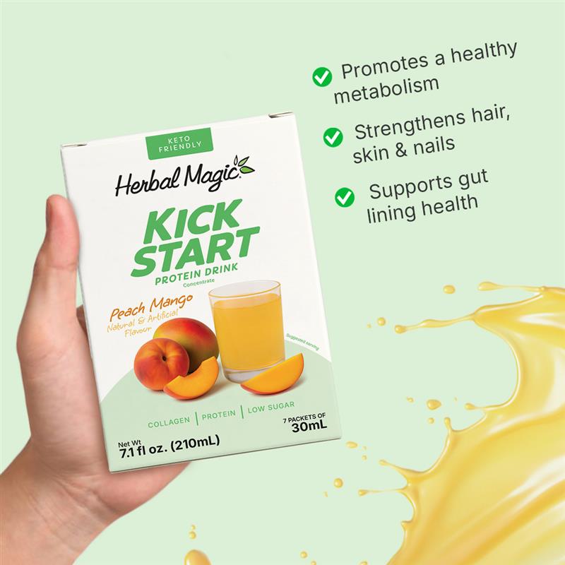 Our Kickstart Protein Drink is formulated with 15 grams of protein per packet using high-quality hydrolyzed collagen, with only 70 calories and 2 grams of sugar, making it keto-friendly and easy to fit into your day.